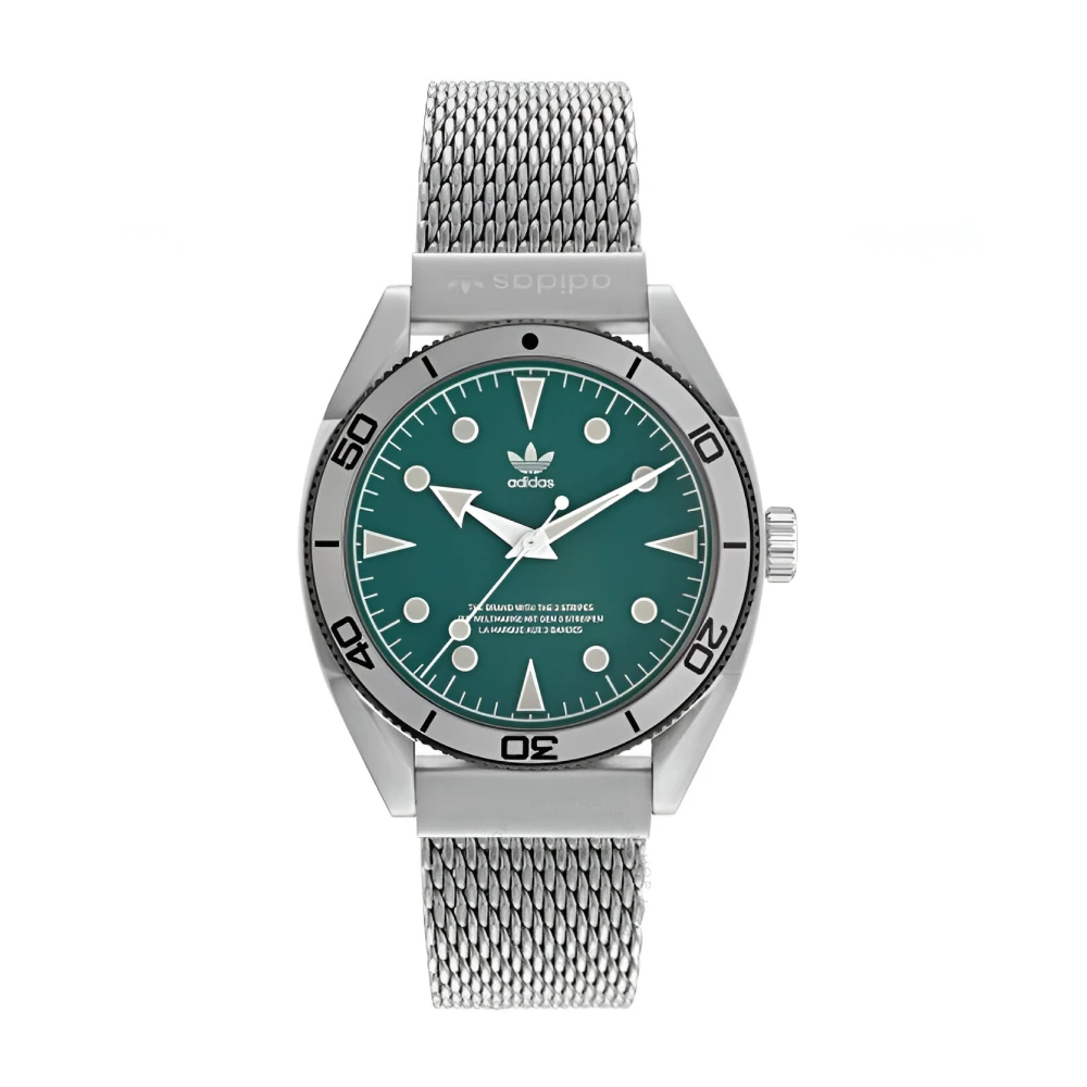 The Adidas Stainless Steel Quartz Watch is designed for those who appreciate clean, minimalist style with functional features. Its durable stainless steel construction, paired with a precise quartz movement, ensures that you not only have a fashionable accessory but also a reliable timepiece. The green dial serves as a stunning focal point, while the 42mm dial size strikes the right balance between bold and wearable. Whether you’re in the office, at the beach, or enjoying your favorite outdoor activities, this watch can keep up with your busy lifestyle while looking great.
