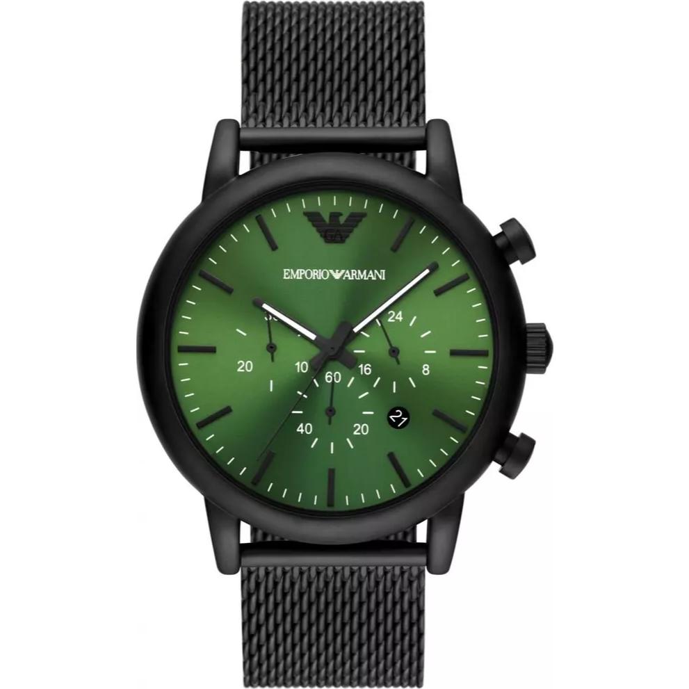 Make a statement with the Armani Men’s Black Stainless Steel Chronograph Watch. Designed for those who appreciate both precision and style, this timepiece blends modern sophistication with powerful functionality. Featuring a striking 46mm green dial, a black stainless steel case, and a sleek metal bracelet, this watch is a perfect companion for the man who wants to stand out. Whether you’re heading to the office, a formal event, or an evening out, this Armani watch ensures you do it with confidence.Precision and Durability in Every Second