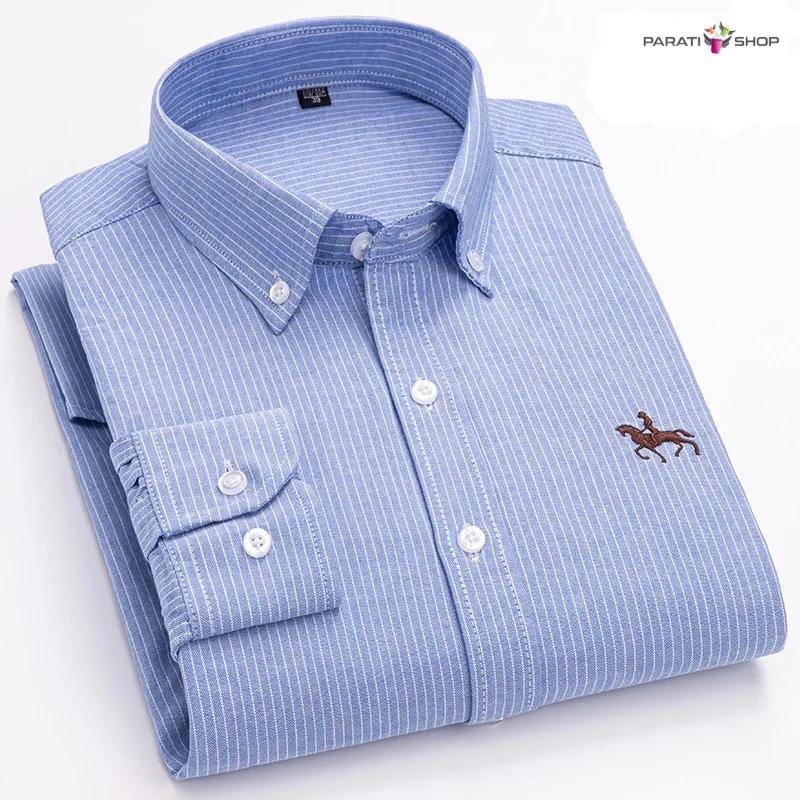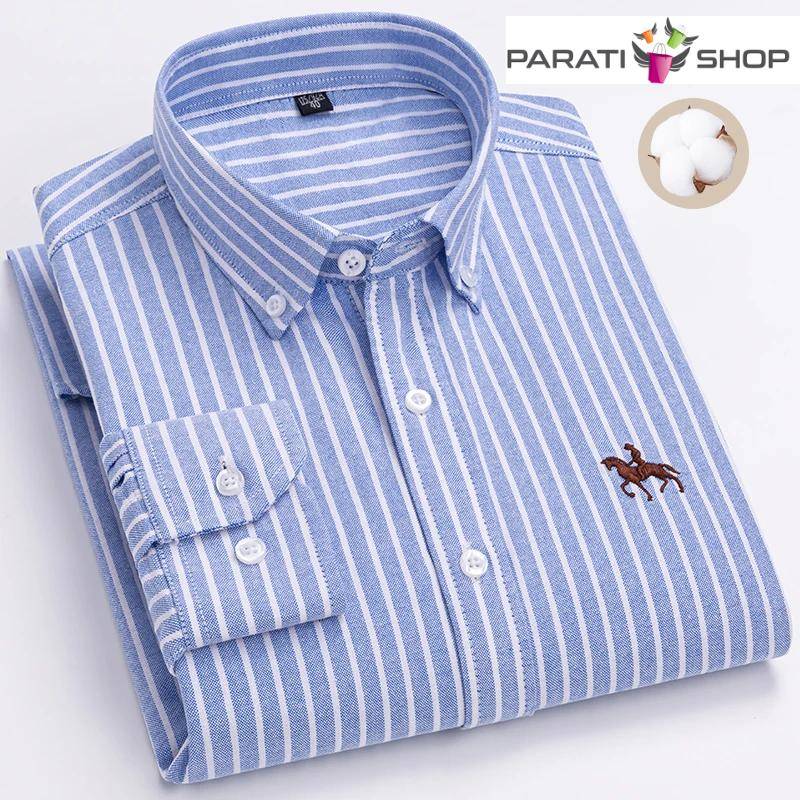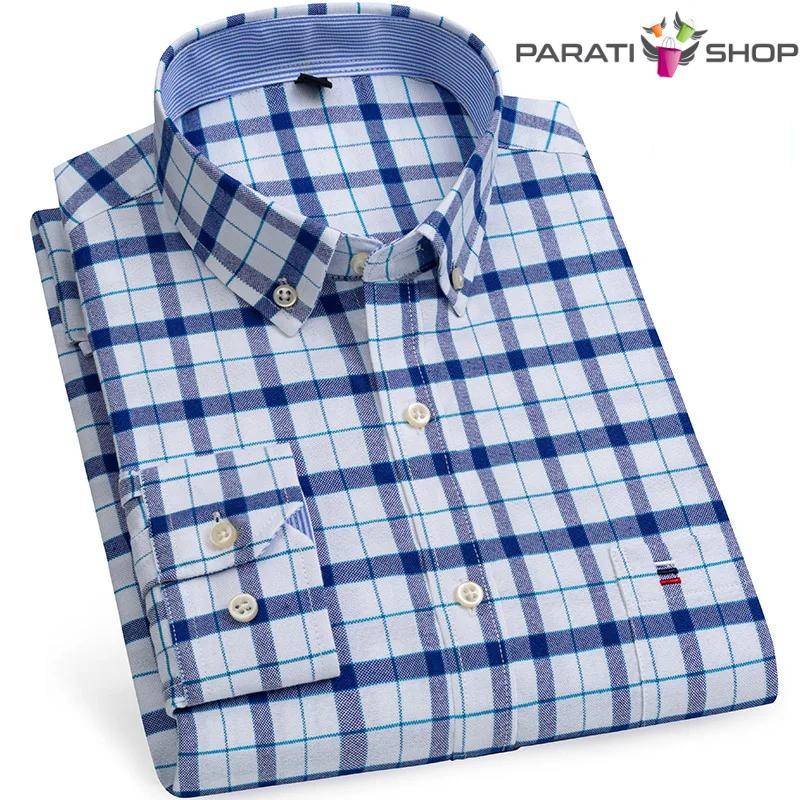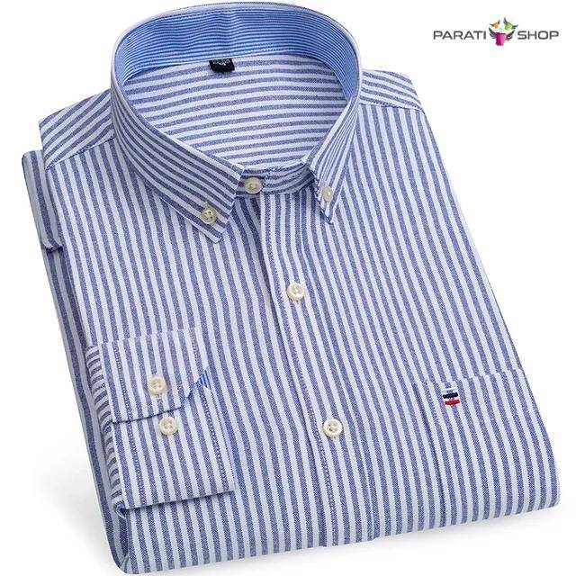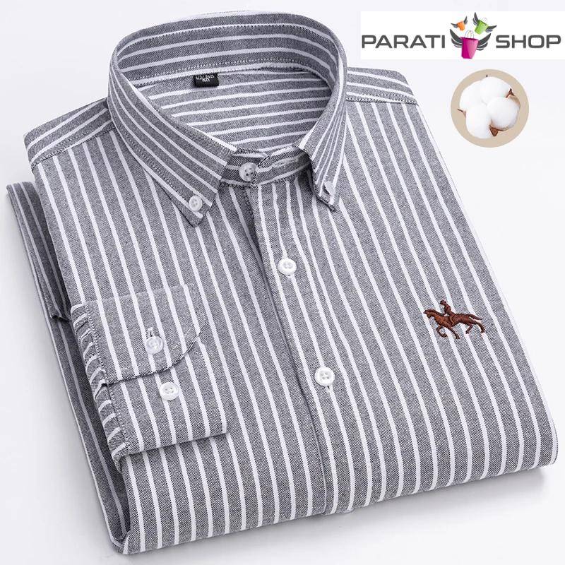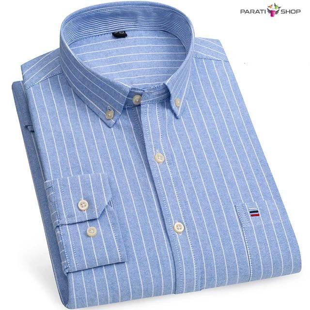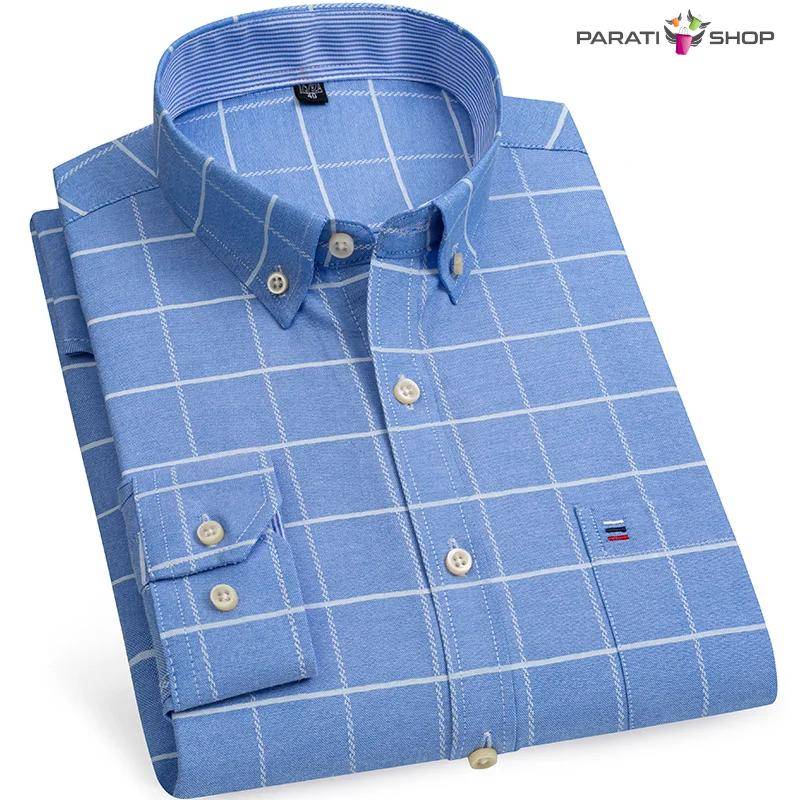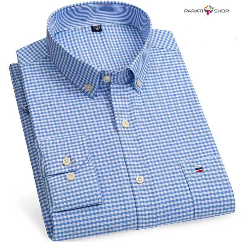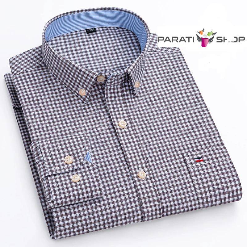 Camisa Oxford de algodón para hombre, informales a rayas a cuadros de manga larga