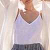 Gran top de lino. Material hermoso para el verano. En la estación fría, es bueno como base para una chaqueta o un jersey. Las correas son delgadas, suela ajustable. Cuello en forma de V en la parte delantera, en la espalda recta. No brilla. Mis parámetros son 152 cm/82-62-84/42 kg. Más tarde completaré fotos detalladas. Ver más fotos y vídeos en mi i n s t a g r a m-t e l e g r a m (IMENNO_TE)