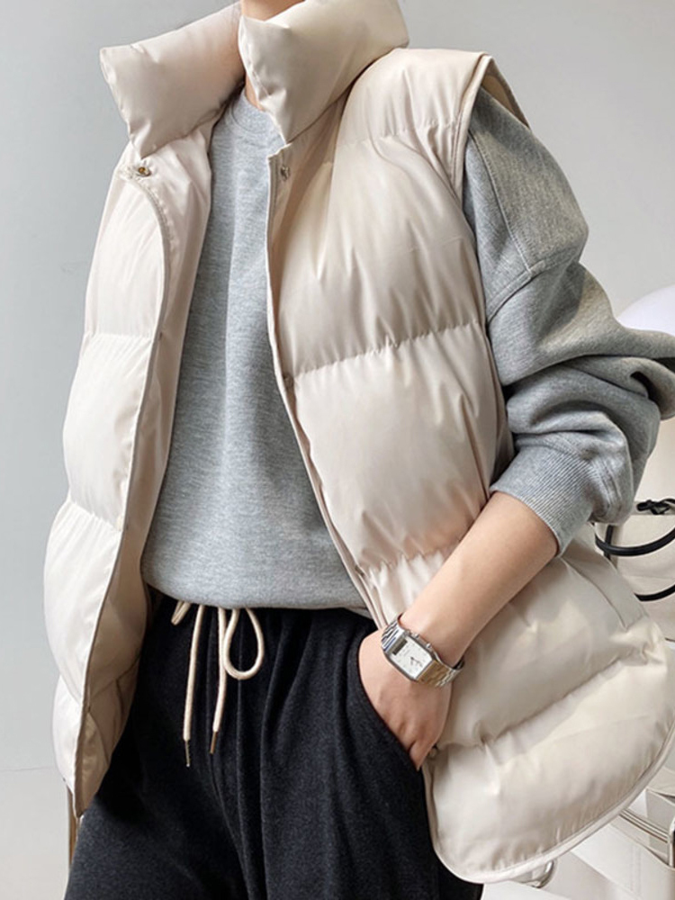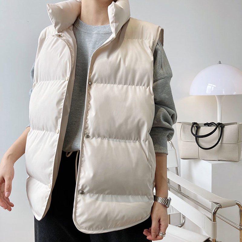 Chaleco a la moda para mujer, holgado sin mangas, con cuello levantado, de un solo pecho, Color sólido