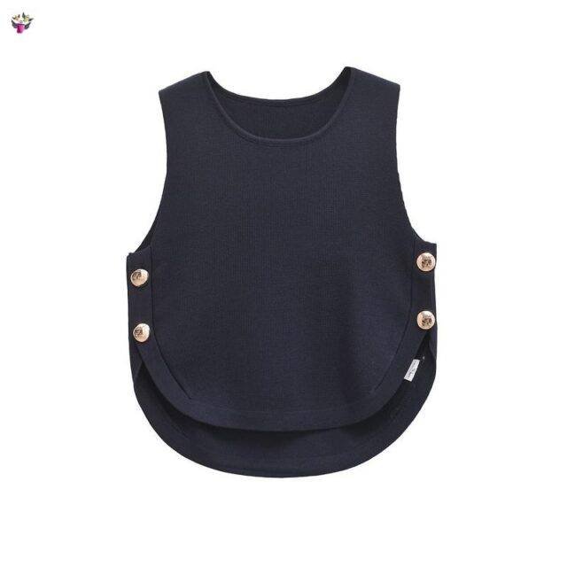 Chaleco a la moda para mujer, holgado sin mangas, con cuello levantado, de un solo pecho, Color sólido                                                                …