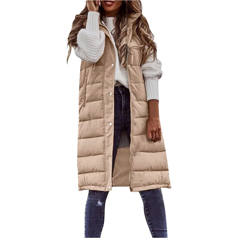 Chaleco largo con capucha para exteriores, acolchad0 sin mangas, ligeros de Invierno para mujer