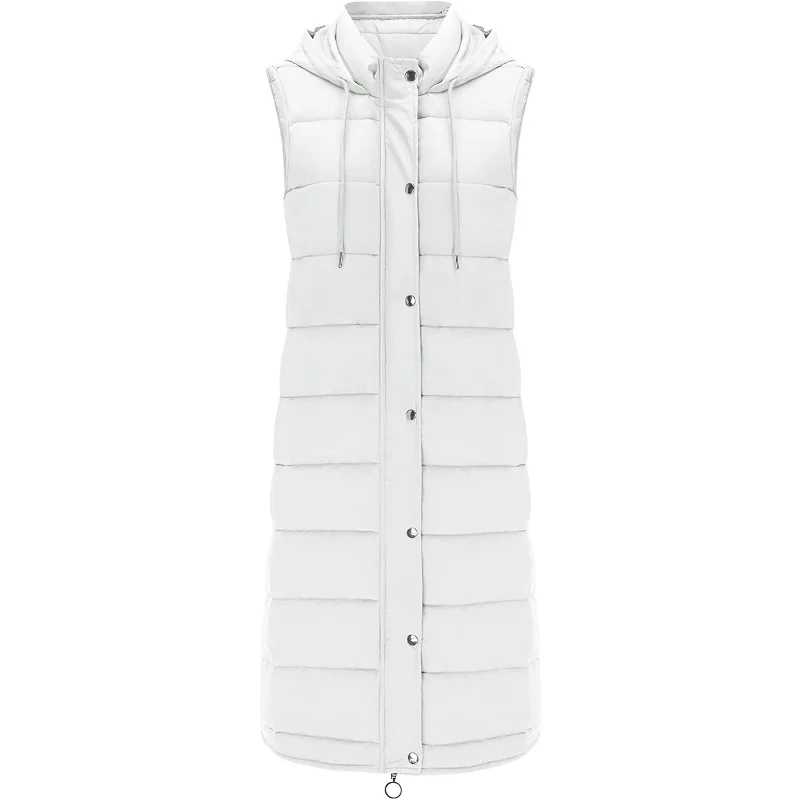 Chaleco largo con capucha para exteriores acolchado Chalecos de Mujer