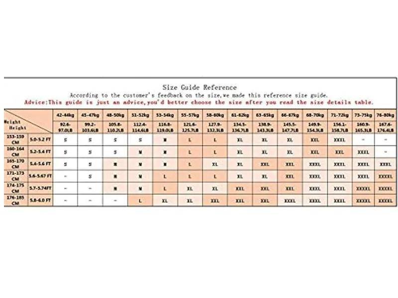 ¡Compara las tallas detalladas con la tuya antes! Los colores pueden ser ligeramente diferentes dependiendo de la configuración del ordenador y del monitor.