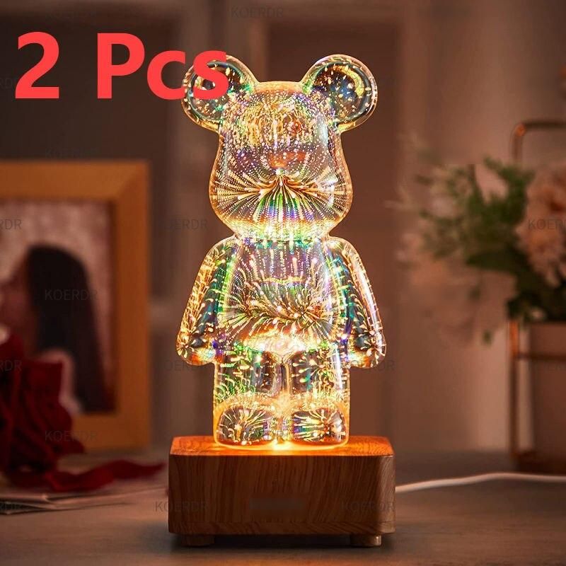 Introducing our Colorful 3D Bear Fireworks Night Light, a magical addition to any room. Designed to captivate, this USB-powered light projects a dazzling display of colors, creating an atmosphere of wonder and relaxation. Perfect for bedrooms, living spaces, or as a unique gift, this decorative light is sure to enchant anyone who sees it.