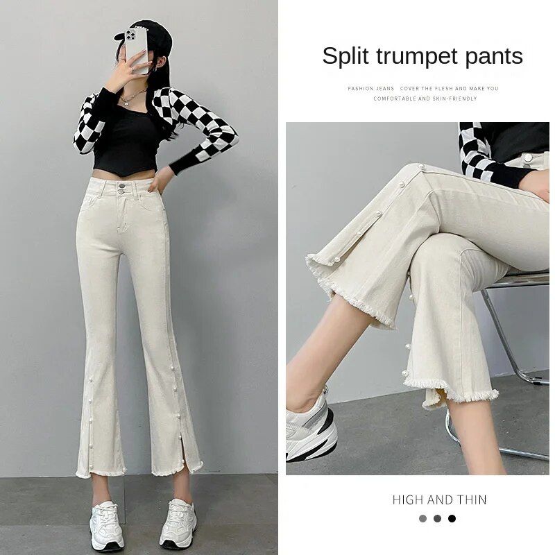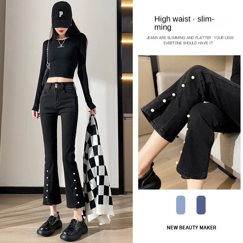 Unveil Your Spring Charm with Pearl-Embellished Flare Jeans