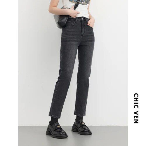 The straight-leg cut combined with a high waist creates a silhouette that celebrates every curve. They come in a loose fit, perfect for those who prize both elegance and comfort. The high-quality cotton denim speaks volumes of durability, while the zipper fly adds a classic touch. Dressed up with a blouse for the office or down with a tee on casual days, these jeans are versatile for any occasion.