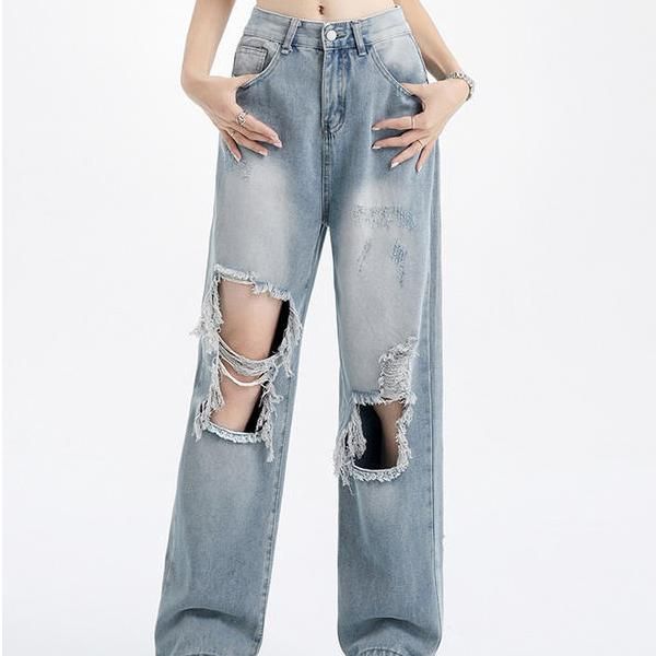 Our jeans aren’t just a piece of clothing; they’re a statement. The distinctive wide leg design gives you room to move, while the high waist flatters your silhouette. The medium wash and strategic ‘hole’ distressing give these jeans a lived-in look that’s both casual and fashion-forward. It’s a perfect match for those who want to showcase their bold style while embracing the comfort that comes with baggy streetwear.