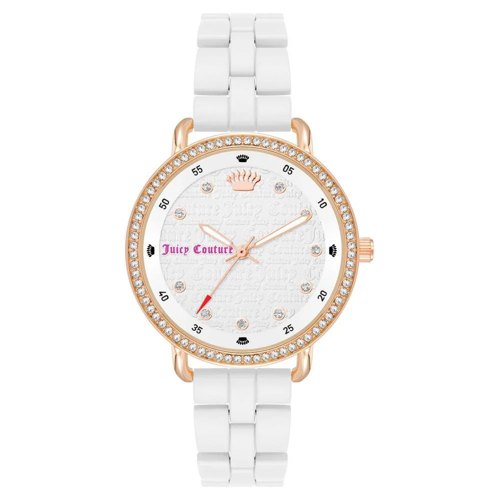 Make a bold fashion statement with the Juicy Couture Women’s Rose Gold & White Metal Quartz Watch. Designed for the modern woman who loves sophistication, this stunning timepiece blends elegance and charm effortlessly. With a rose gold case adorned with sparkling rhinestones and a sleek white metal wristband, it’s the perfect accessory to elevate any outfit. Whether you’re dressing up for a special occasion or adding a touch of luxury to your everyday style, this watch is a must-have in your collection.