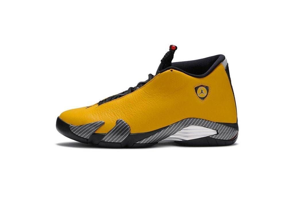 Las zapatillas Air Jordan 14 presenta cuero genuino y sintético, así como materiales textiles. La entresuela de phylon cuenta con unidades Zoom Air encapsuladas en el antepié y el talón, mientras que la suela exterior de goma con un patrón de espiga larga brinda tracción y estabilidad para una parte media del pie rígida.