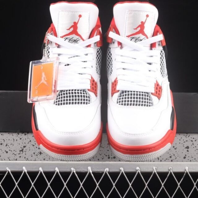 Las zapatillas Air Jordan 4 Retro «Infrared» poseen un contraste con la puntera redonda con el cierre de cordones en la parte de delante el logo en color rojo destacándose en la lengüeta como en la su suela de goma