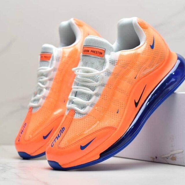 Las zapatillas deportivas, las Air Force 1 de caña baja tienen una forma clásica. La parte superior está hecha de nailon, cuero, pana y otros materiales. Los cordones también se pueden equipar con un diseño similar a una cremallera, y el talón tiene un diseño elegante con anillo del mango muestra la atención de Travis Scott al detalle. La caja de zapatos tiene un diseño de cajón de doble capa, con una capa exterior de color amarillo claro impresa con un logotipo de Nike azul y la icónica mueca de Travis Scott. Hay ventanas transparentes en el lateral, que le permiten ver el elemento de texto de Kaktyc A*ek Records en la capa interior.