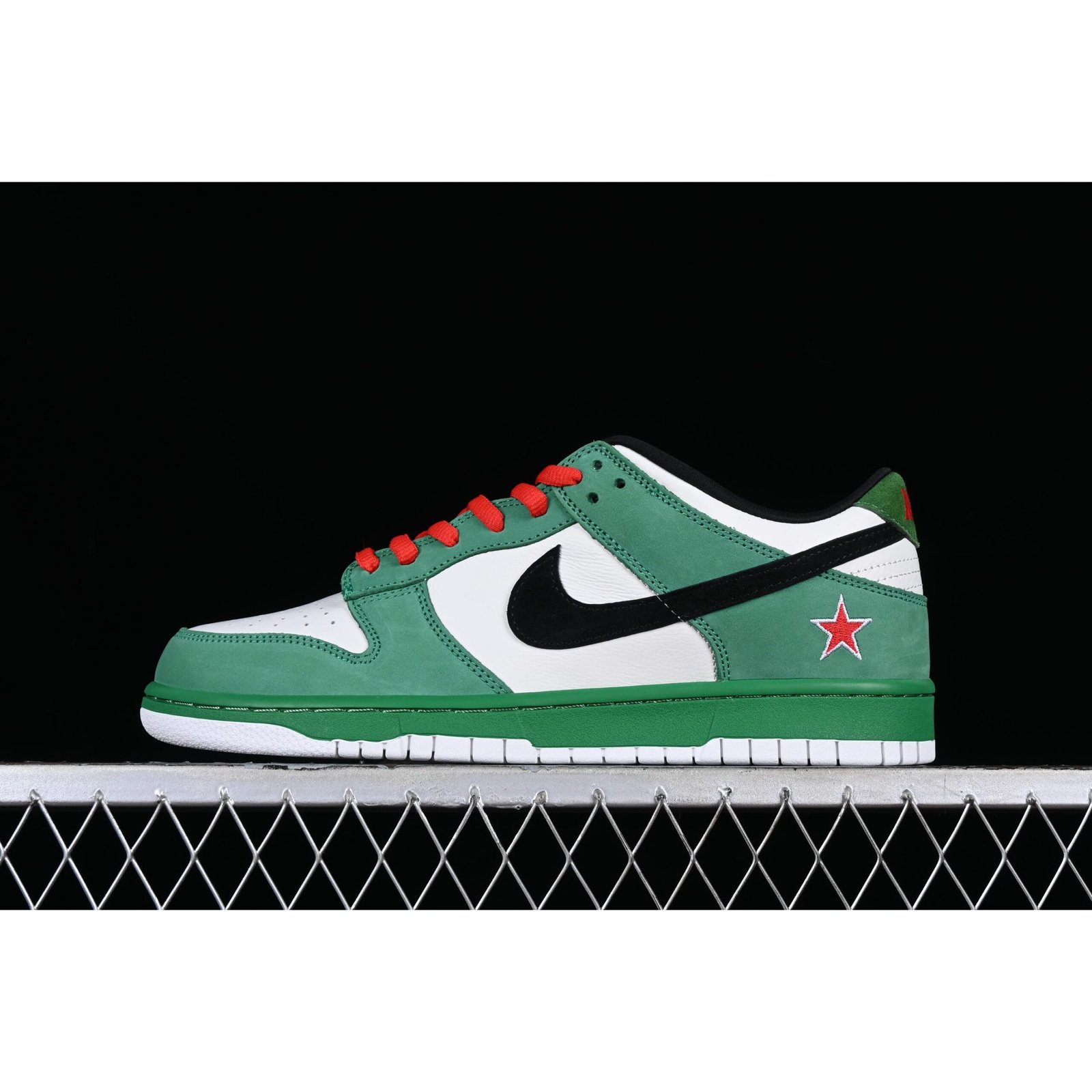 Las Zapatillas versión Y Nk Dunk SB LoW Heineken este par de mates comúnmente conocidos como Heineken está inspirado en la cerveza Heineken y está hecho de cuero de capa superior original.