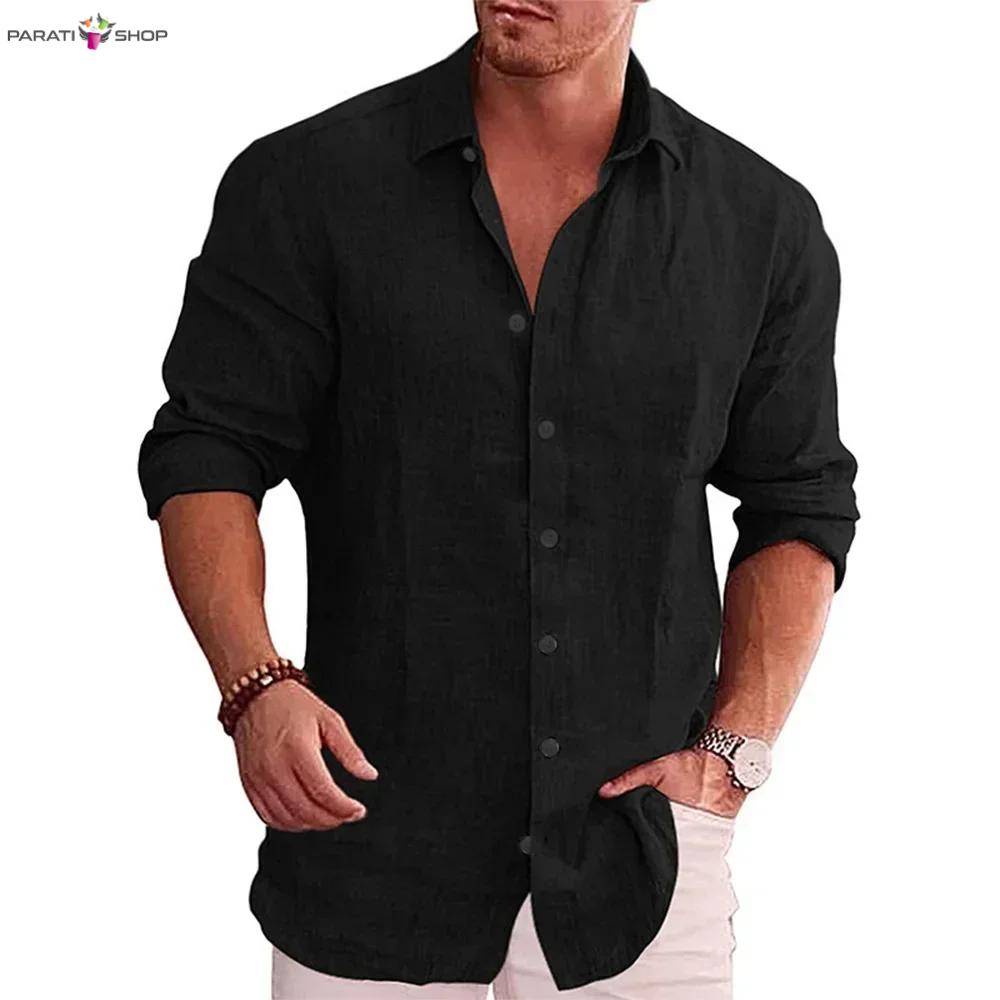 Camisa de manga larga de otoño de lino y algodón para hombre