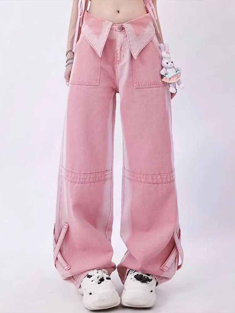 Pink High Waisted Baggy Wide Leg Jeans – Y2K Streetwear Loose Denim