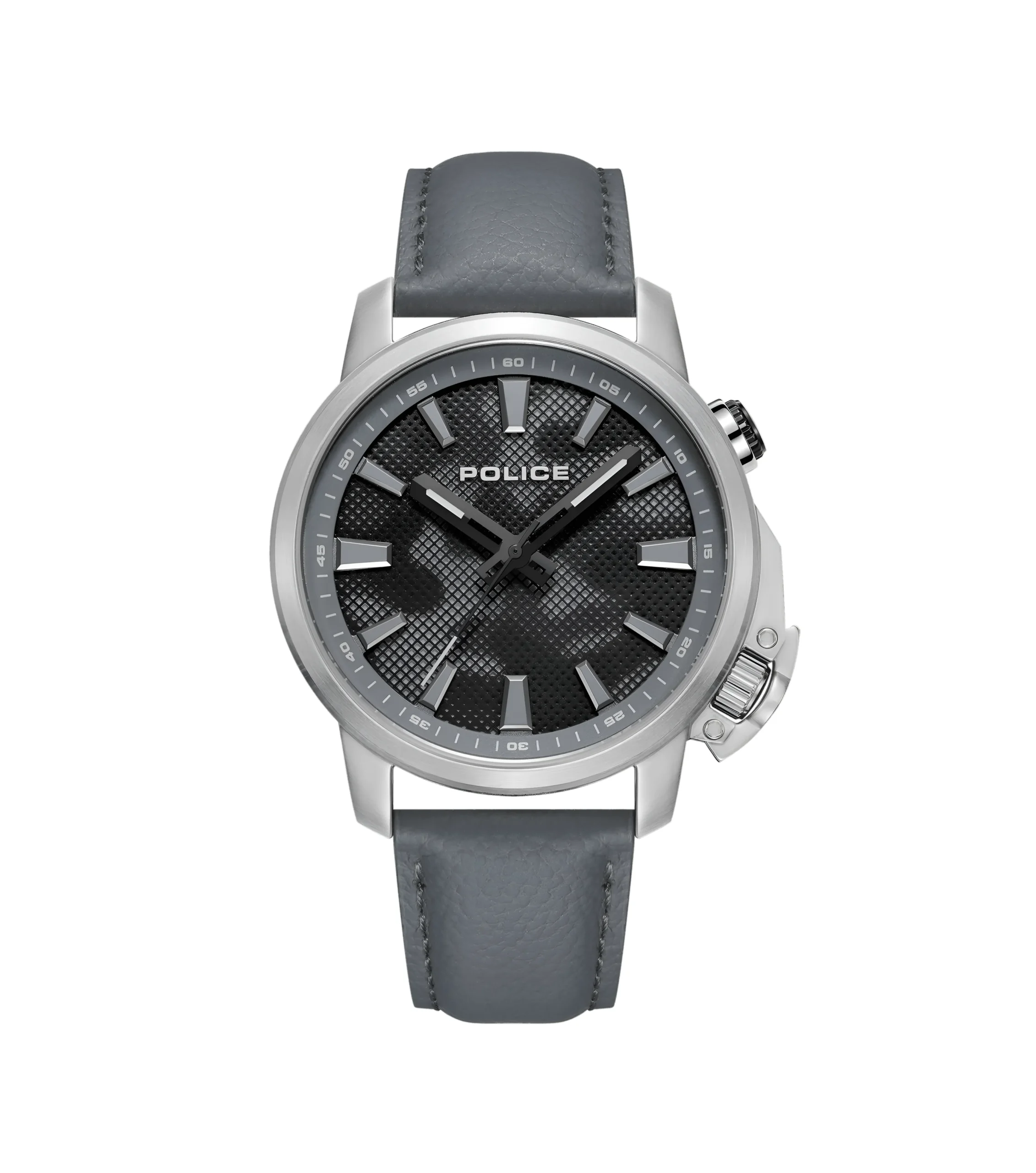 Elevate your style with the Police Men’s Grey Stainless Steel Watch with Leather Strap. Designed for the modern man, this timepiece combines rugged durability with sleek sophistication. The bold 44mm case, crafted from stainless steel in a refined grey finish, pairs effortlessly with a high-quality grey leather strap for a contemporary yet timeless appeal. Whether you’re at work, out on the town, or attending a formal event, this watch is the perfect accessory to complement your look.