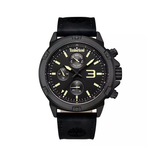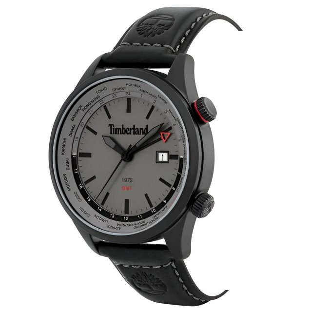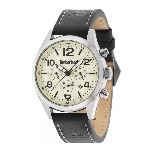 Quartz Analog Timberland Watch with Black Leather Strap – Grey Stainless Steel Case