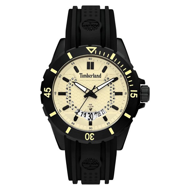 Timberland 46mm Black Silicone Watch with Yellow Dial