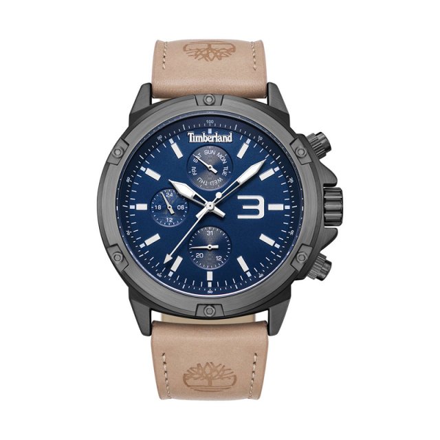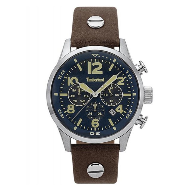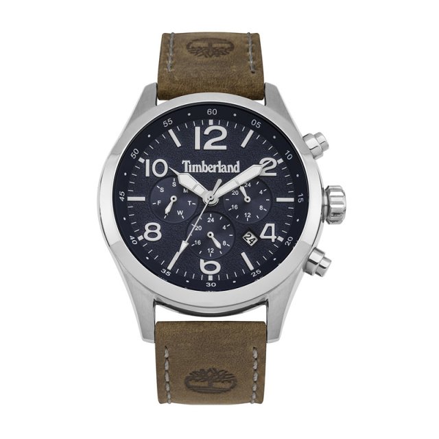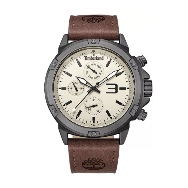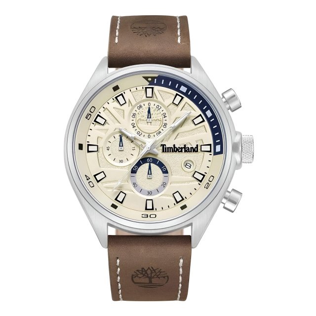 Quartz Timberland Stainless Steel Watch with Brown Leather Strap – 45mm Dial
