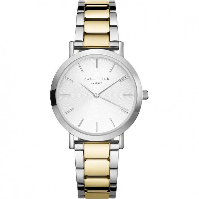 Rosefield Tribeca Whitesunray Watch – Silver Case & Gold Steel Bracelet, 33mm