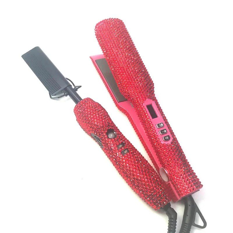 Rhinestone Decor Hair Straightener & Hot Comb Duo Set