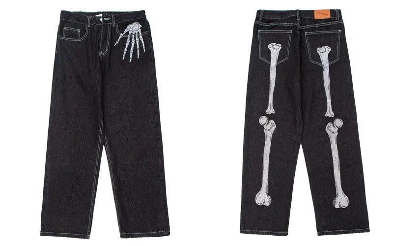 - Striking Skeleton Pattern: With an intricate embroidery of bones, these jeans embody the essence of hip-hop culture and punk influence.