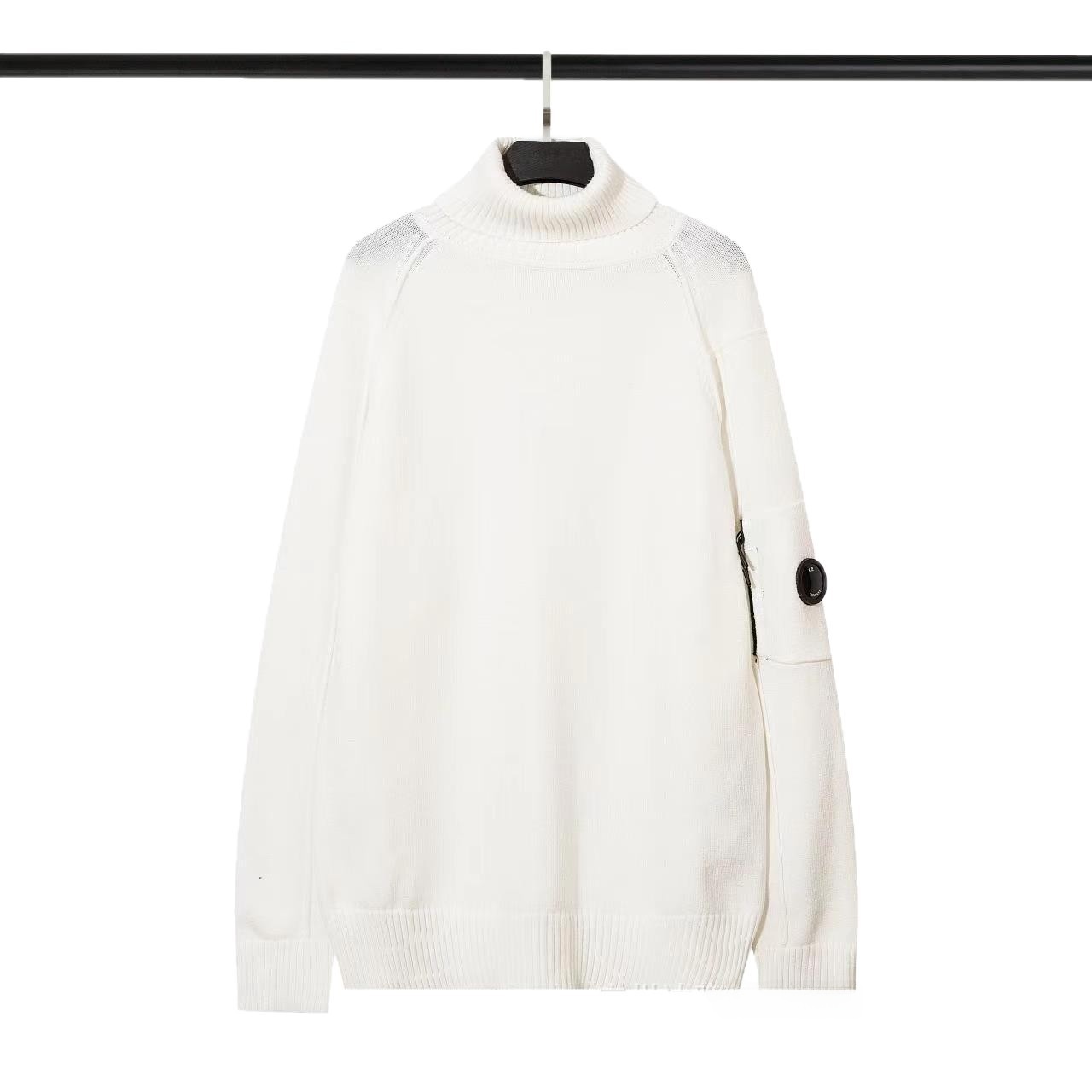 Eleva tu armario con este suéter de diseño funcional que destaca por su icónica insignia de lentes, aportando un toque urbano único. Confeccionado con una mezcla premium de algodón y lana (96-99%), ofrece una suavidad lujosa y una durabilidad excepcional. Su tejido de alta elasticidad y elegante cuello alto garantizan un ajuste perfecto y cómodo, ideal tanto para un look casual como para ocasiones formales.