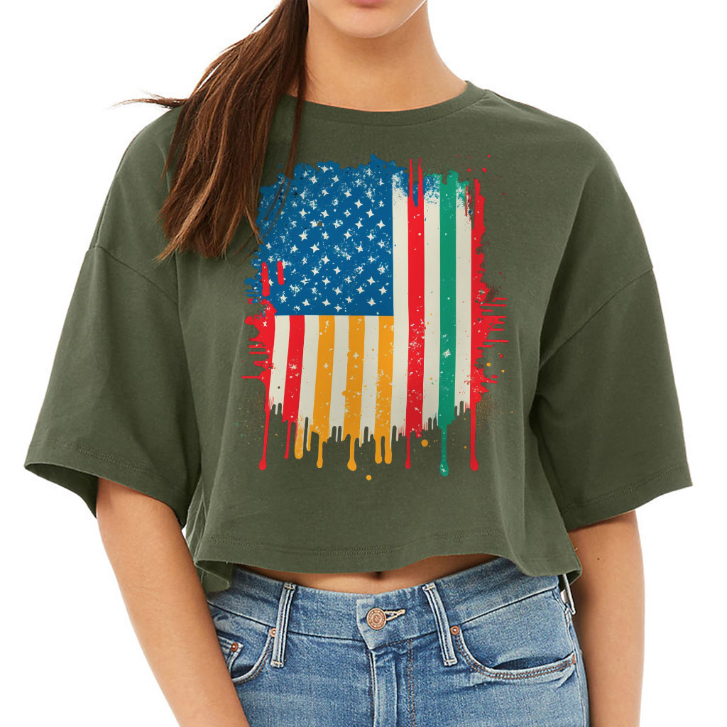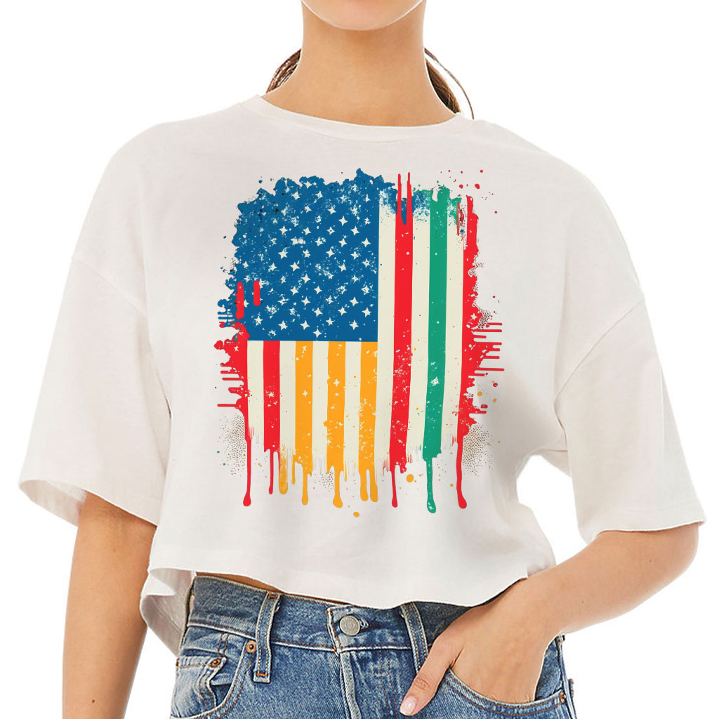 USA Flag Women’s Crop Tee Shirt If you’re looking for a must-have item to add to your wardrobe, Creative is a perfect choice! This comfy cropped t-shirt offers all-day comfort with its side seam and mid-length design. Plus, the retail fit provides an aesthetically pleasing appearance while still providing versatility. Whether…