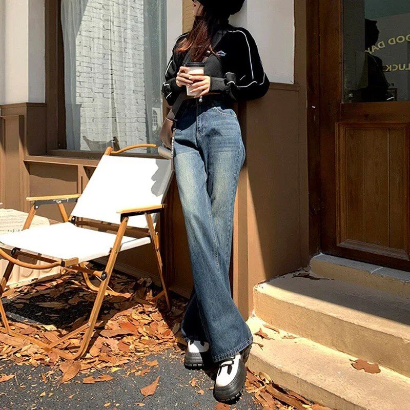 Embrace the comeback of the Y2K fashion era with a contemporary twist in our High Waist Straight Micro Flare Jeans. Crafted with a blend of cotton and polyester, these jeans boast a comfortable stretch, perfect for all-season wear. The timeless allure of the Korean-style wide-leg baggy fit makes them a versatile piece for your wardrobe, ensuring you stay at the forefront of streetwear fashion. Whether you’re stepping out for a casual day or dressing up for a night out, these jeans will be your go-to for effortlessly stylish outfits.Exceptional Features for All-Day Comfort