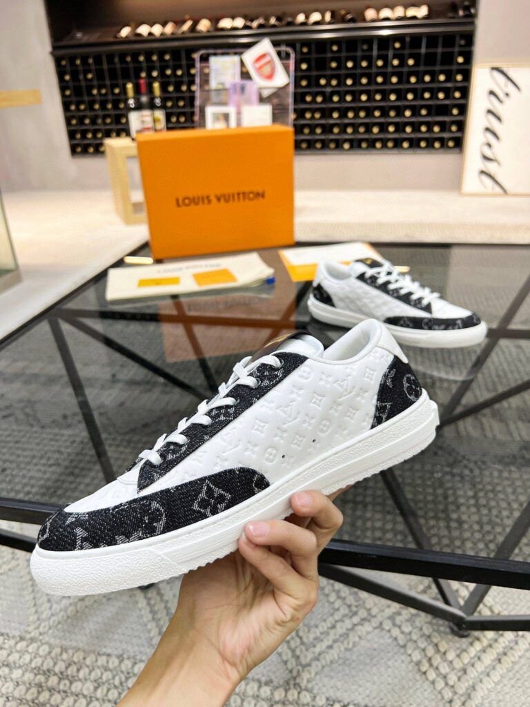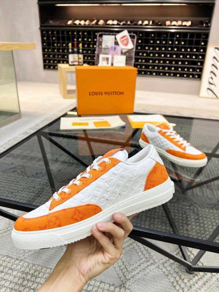 Las zapatillas LV están hechas de cuero de vaca importado en la parte superior con mezclilla, la ingeniosa combinación de colores es imprescindible para la gente de moda, la artesanía compleja se reproduce perfectamente, agua suave importada- pad interior de piel de vaca teñida suave regrabada y teñida al agua , la suela original es proporcionada especialmente por la fábrica original, la exclusiva suela de moldeo activo