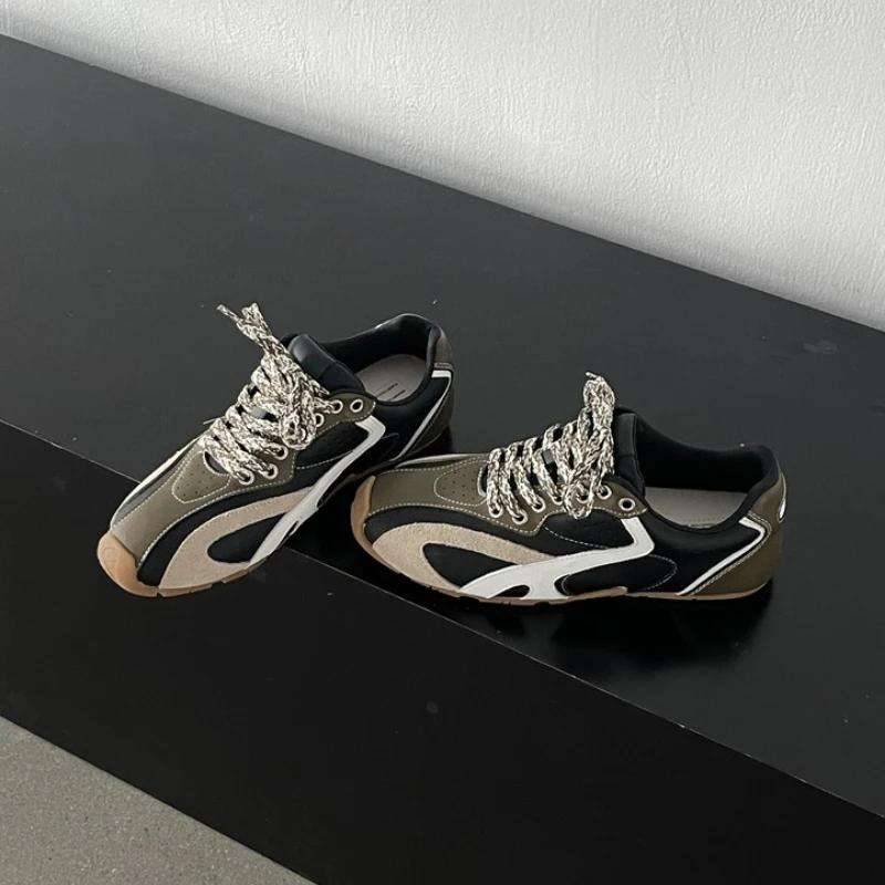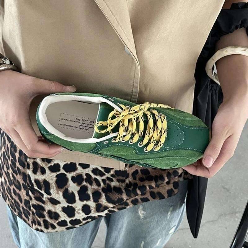 Zapatillas de suela gruesa, deportivos informales retro de cuero genuino otoño …